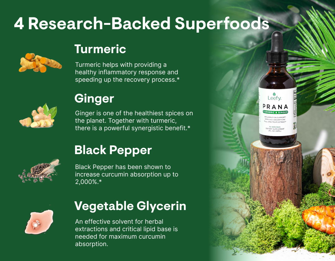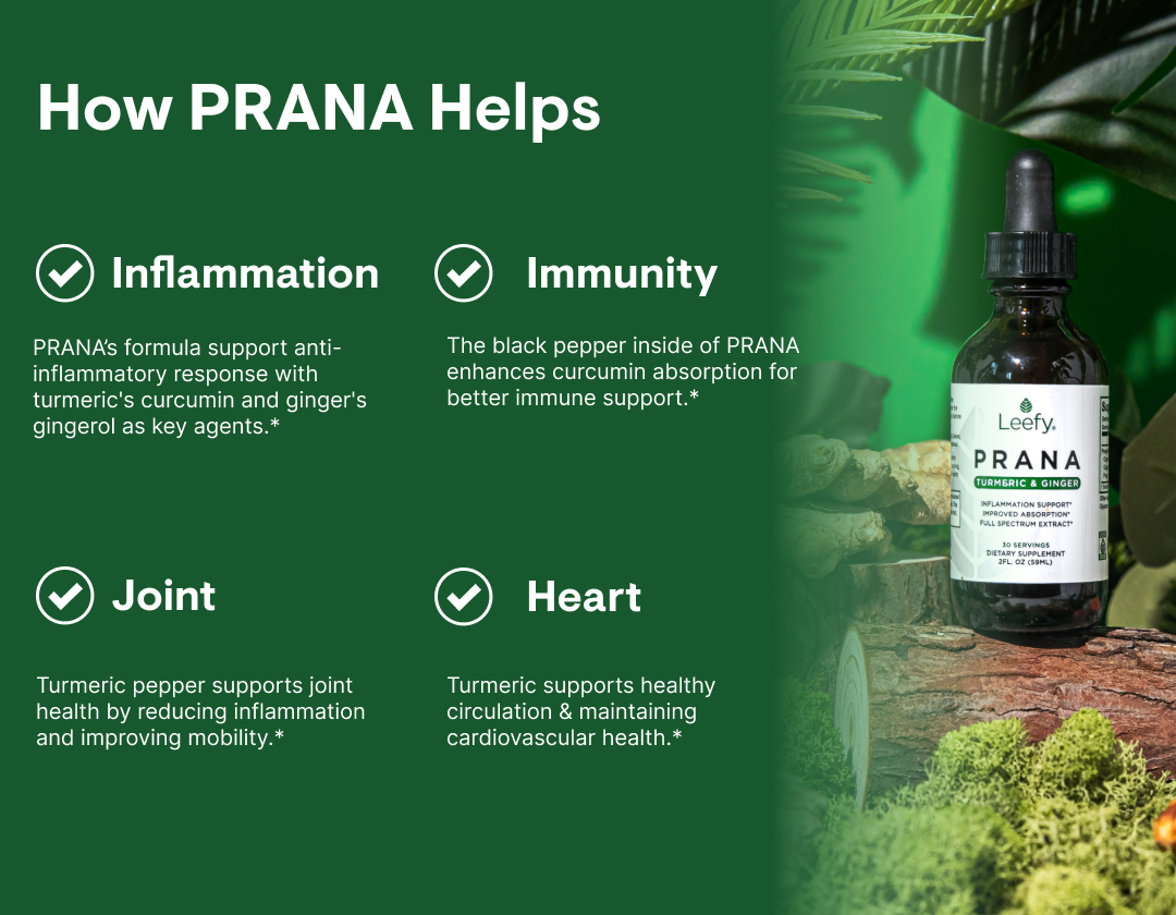 As you begin taking PRANA, your body absorbs the potent blend of turmeric, ginger, and black pepper, supporting digestion and inflammation balance.